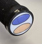 Available with circle red/white and blue/yellow buttons or oval red/green and blue/tan buttons.